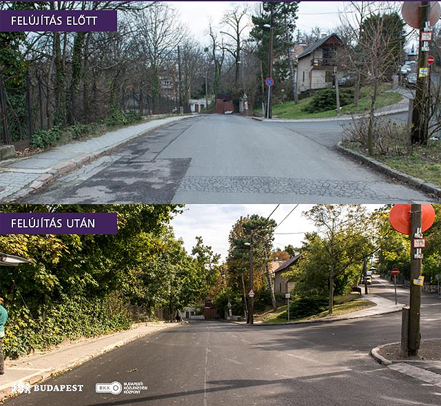 A Fővárosi Vízművek a Mátyás király út Csillagvölgyi úttól az erdőig vezető szakaszán a napokban fejezte be a gerincvezeték cseréjét, ezért az őszi-téli időjárás kiszámíthatatlansága miatt a Hegyvidéki Önkormányzat 2017-re tervezi ennek a szakasznak a felújítását.